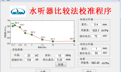 装置用于0.5 MHz以上高频水听器声压灵敏度的比较法校准,实物图与软件界面见图5。指标满足GB 15611-1995《高频水听器校准》、JJG 1070-2011《0.5 MHz ~ 5 MHz标准水听器(二换能器互易法)检定规程》的要求。目前,此装置已多次服务于各医疗器械检验所、…
