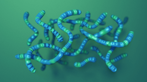 图:像彩虫橡皮糖一样的构造:PCDTPT的每一条都由两部分组成,它们像橡皮糖上的颜色一样交替出现。蓝色部分是电子供体,它释放电子。绿色部分是电子受体,它吸引电子。将多个PCDTPT股线并排放在薄膜中,使电子可以在材料周围自由移动并导电。