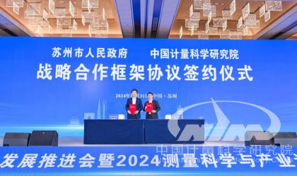 10月31日,计量支撑新质生产力发展推进会暨2024测量科学与产业计量测试技术报告会在江苏省苏州市举办。会上,中国计量科学研究院(以下简称“中国计量院”)与苏州市人民政府举行战略合作签约仪式。中国计量院副院长屈继峰与苏州市人民政府副秘书长蒋华作为双方代表进行了签约。