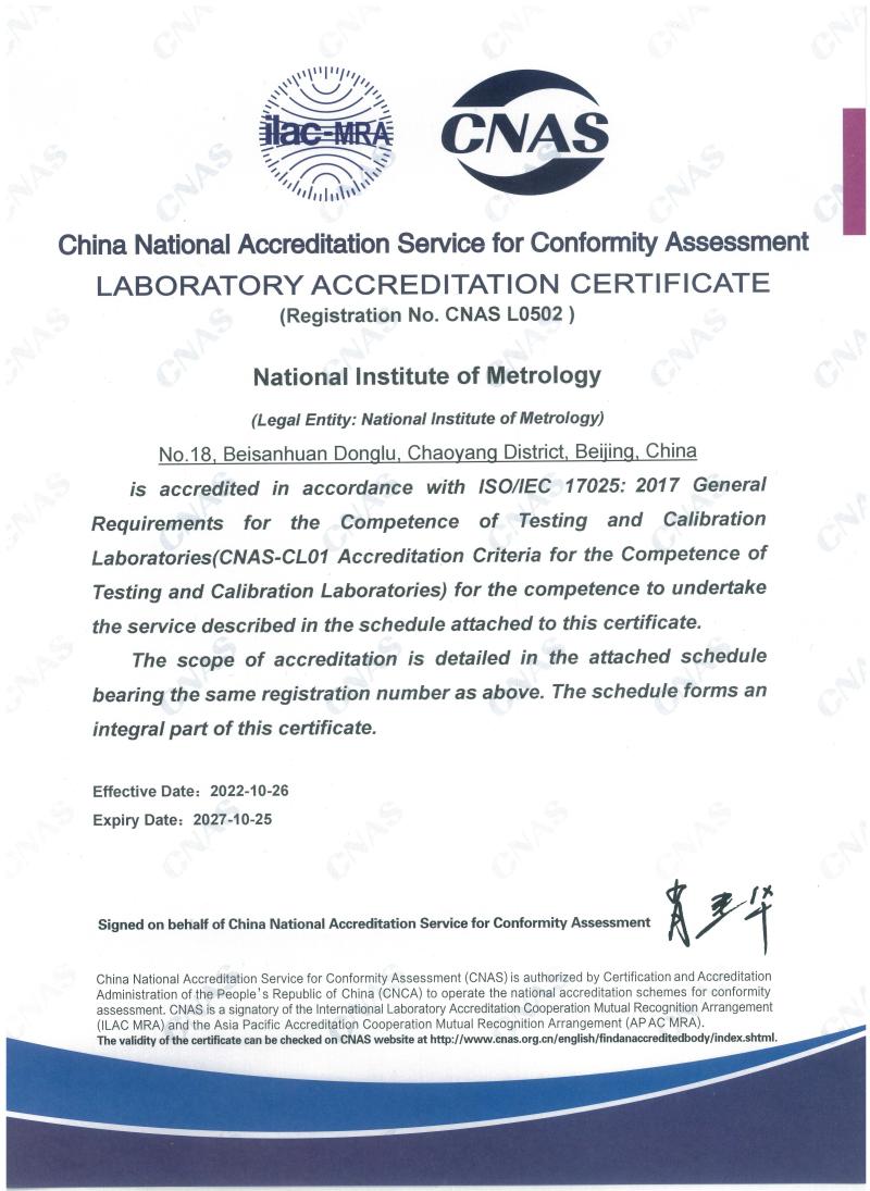 中国合格评定国家认可委员会实验室认可证书(英文)